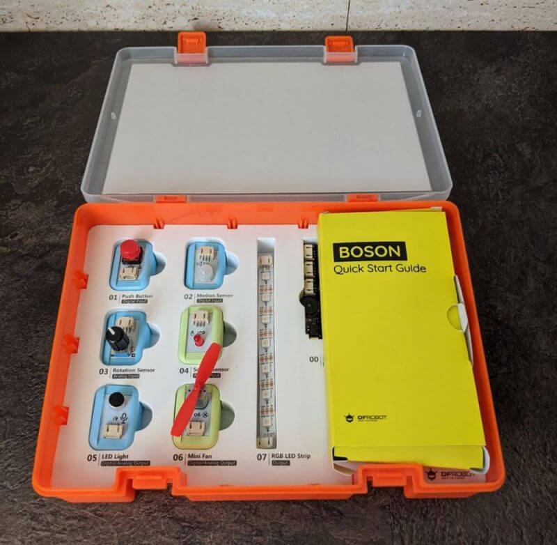 The DFRobot Boson Start Kit is an excellent set of tools for children and beginners. Using this kit is a great way to learn the basics of coding and electronics.