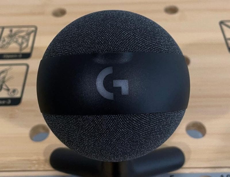 After unboxing the product for this Logitech Yeti Orb Review, we saw how minimal its design is. The Yeti Orb is a ball concealed with a charcoal-grey mesh material, plus a black plastic band surrounding its mid-section.