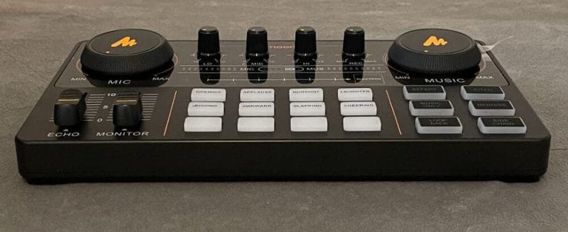 Since the Maonocaster Lite has a wheel knob, adjusting the volume of music and voice was easy. We were also able to experiment with different voice pitches and effects. Although we noticed that the audio vanished when we spoke softly, most sounds were fine