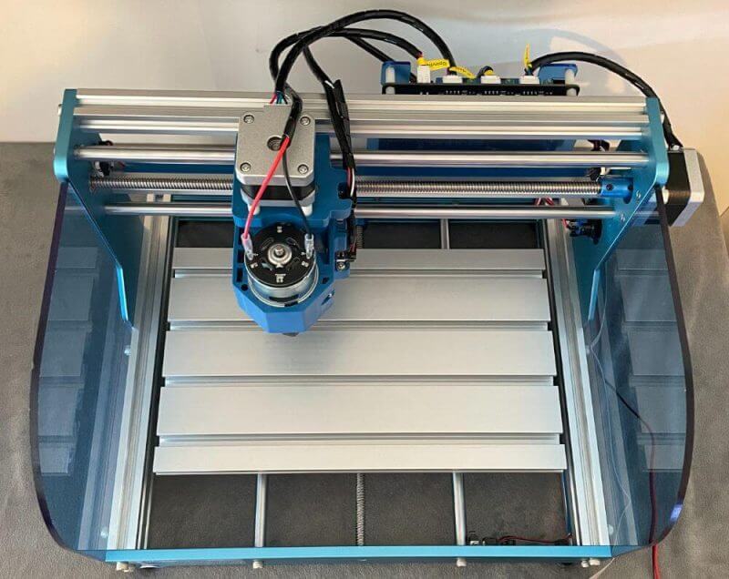 The Genmitsu 3018-PROVer CNC Router boasts an entirely aluminium form that sports an attractive oxide blue shade. It has a cool aesthetic yet still gives off a premium look to it.