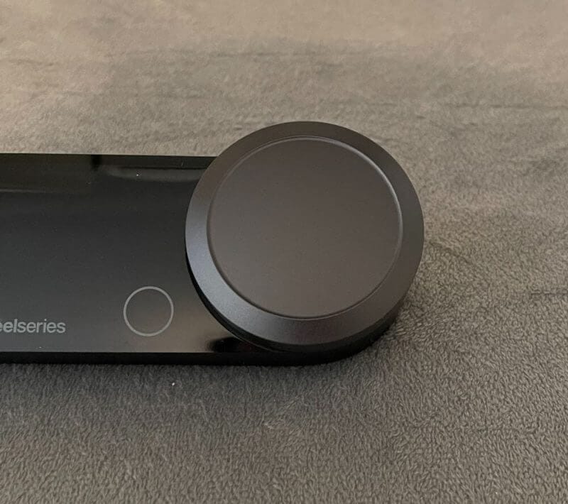 Arctis Nova Pro sports SteelSeries’ GameDAC. It’s a command deck with a big dial that works like a button. To the left of the dial is a little touch-sensitive button that works as a back command.