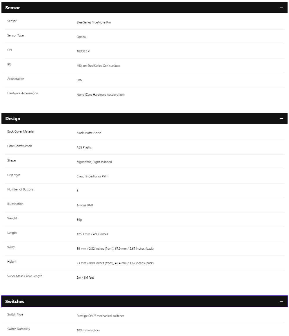Let’s shift to the specifications portion of our Steelseries Prime Gaming Mouse review.